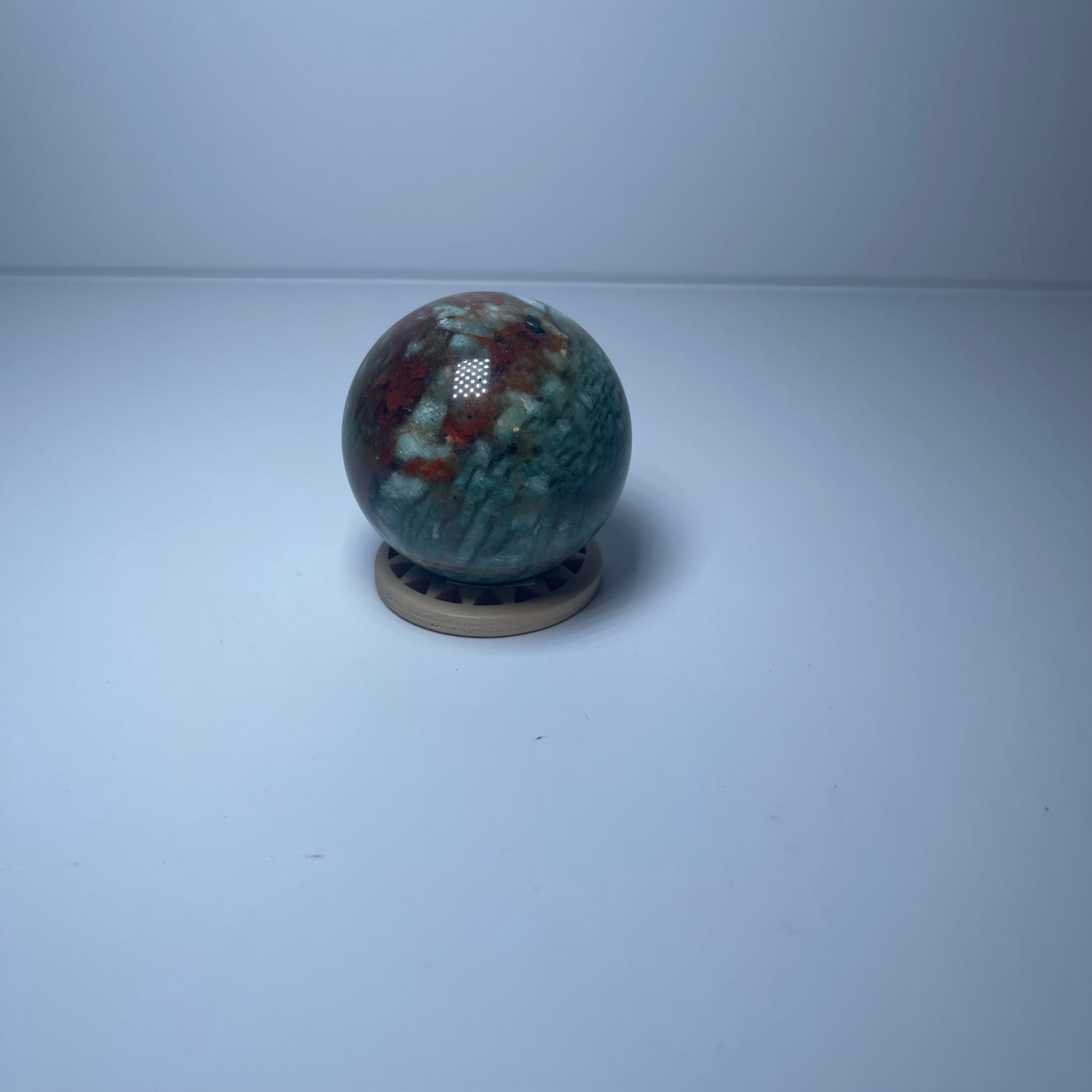 Delicate and calming, this Amazonite Sphere weighs approximately 3 oz and shines with soft blue-green hues. Its polished surface reflects soothing energy, perfect for bringing a sense of peace to any space.