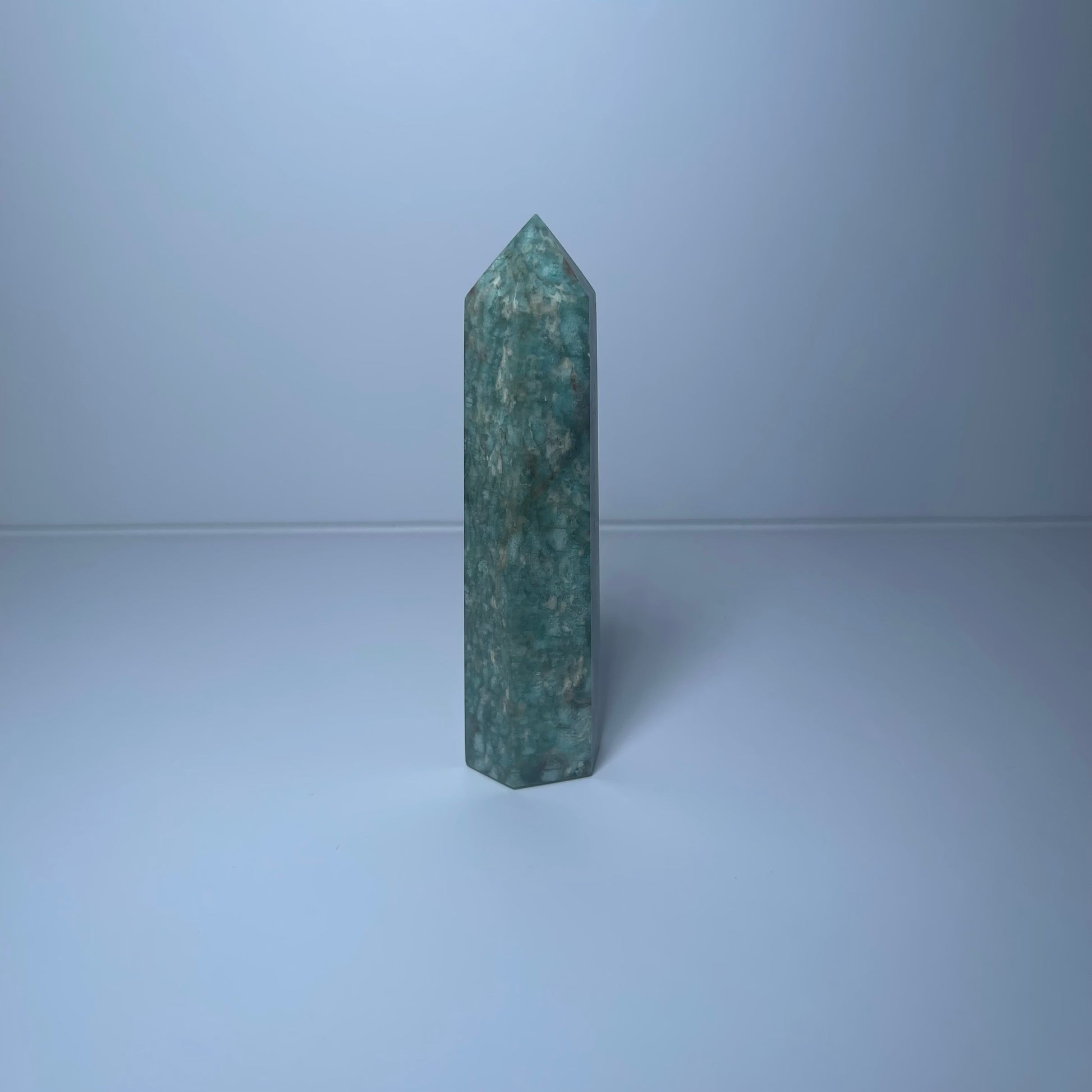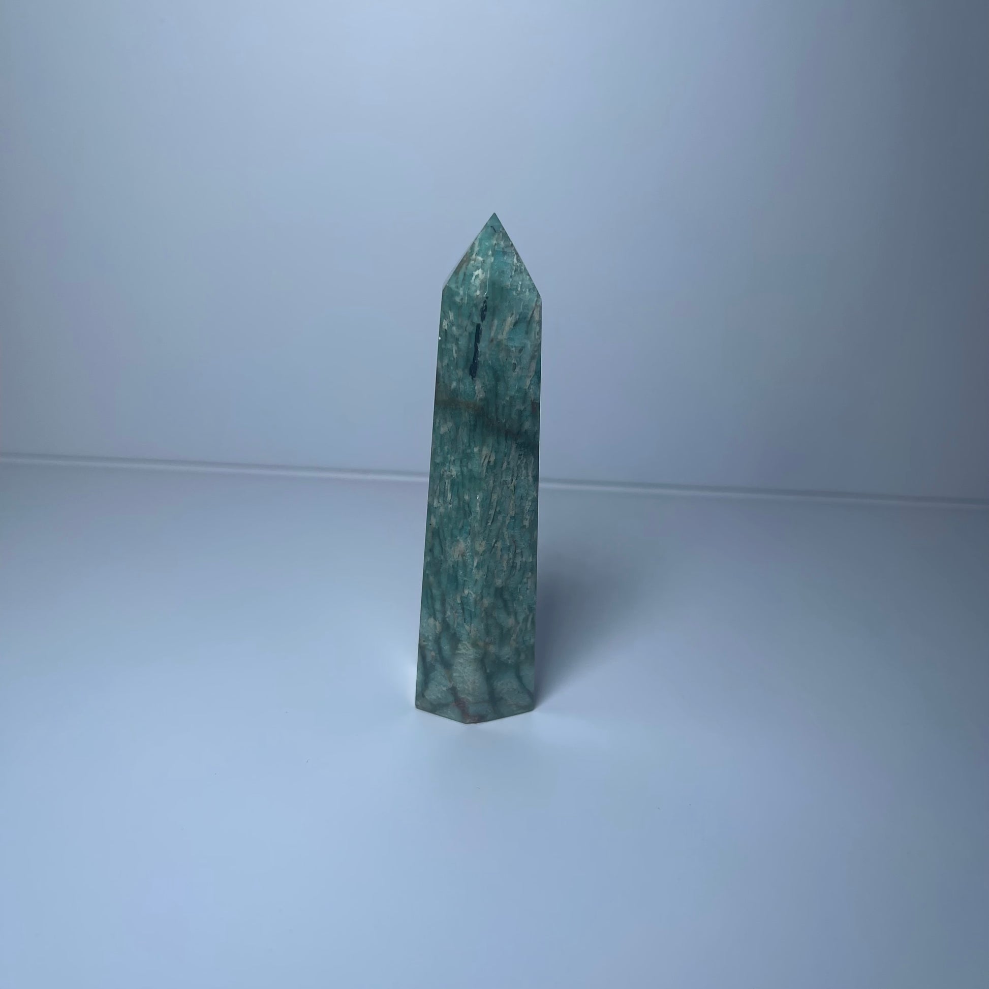 Amazonite is known as a stone of truth, harmony & emotional healing. It encourages open communication, eases stress, and empowers you to align with your authentic voice. In tower form, its energy is focused and amplified, radiating peace and strength upward.