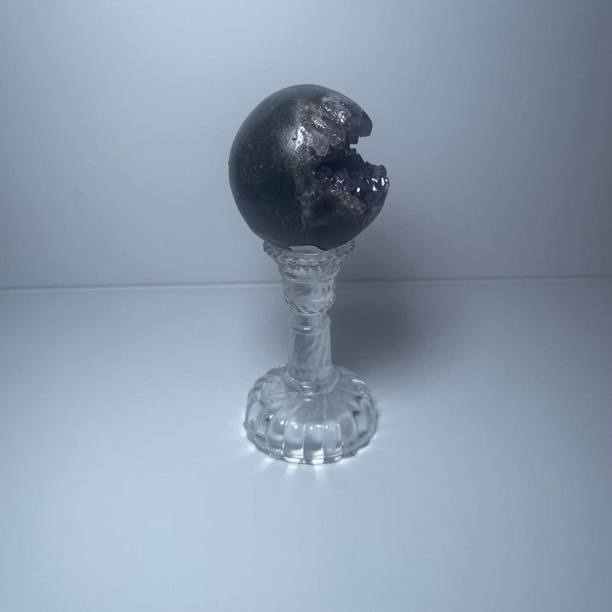 Amethyst is celebrated as a stone of peace, intuition & spiritual growth. This geode sphere radiates energy outward, enhancing meditation, clarity, and balance in any space.