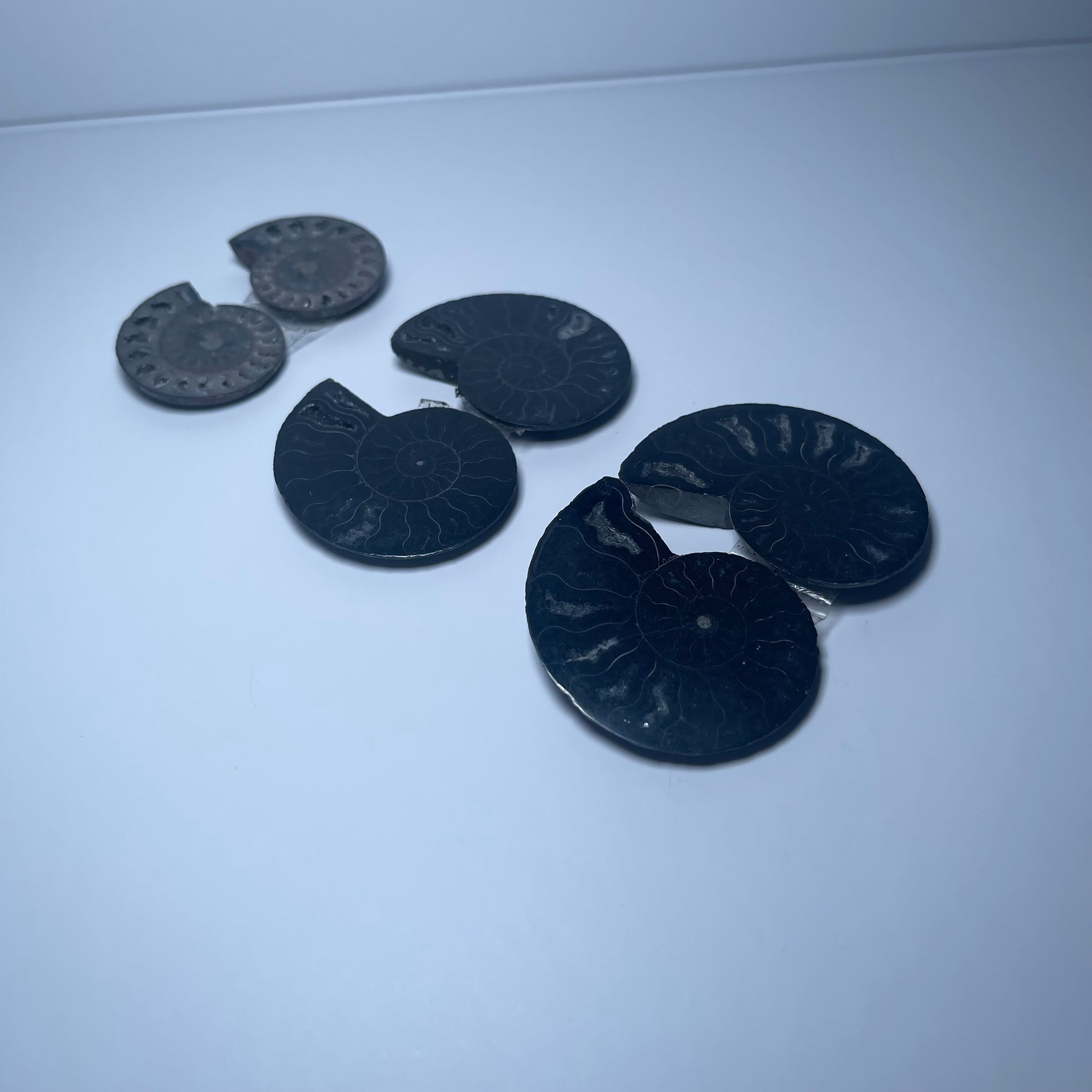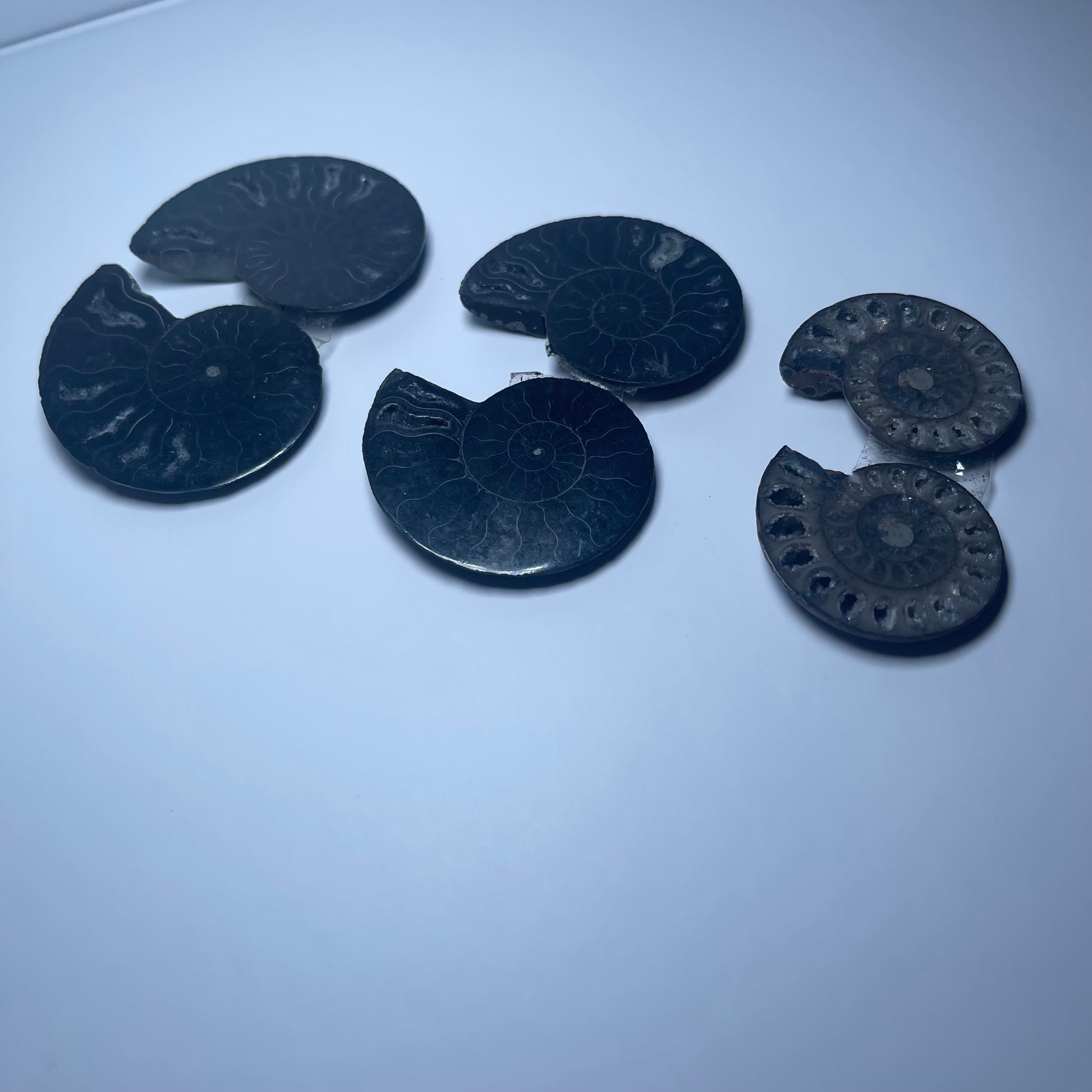 This captivating set includes 6 Ammonite Fossils (3 pairs), ranging from 1.5 to 2 inches and weighing a total of 2.5 oz. Each fossil displays the natural spiral of ancient life, preserving the intricate patterns and energy of the Earth from millions of years ago.