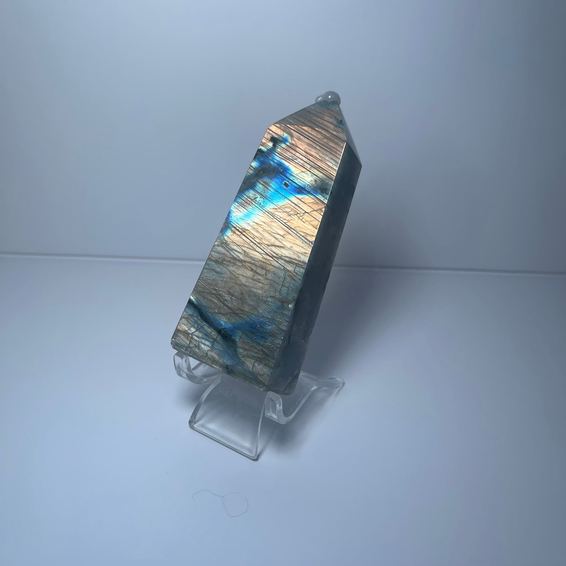 Labradorite is known as a stone of transformation, intuition & protection. It awakens inner magic, strengthens spiritual vision & shields against negative energy. In tower form, its energy is focused and amplified, channeling clarity & empowerment upward.