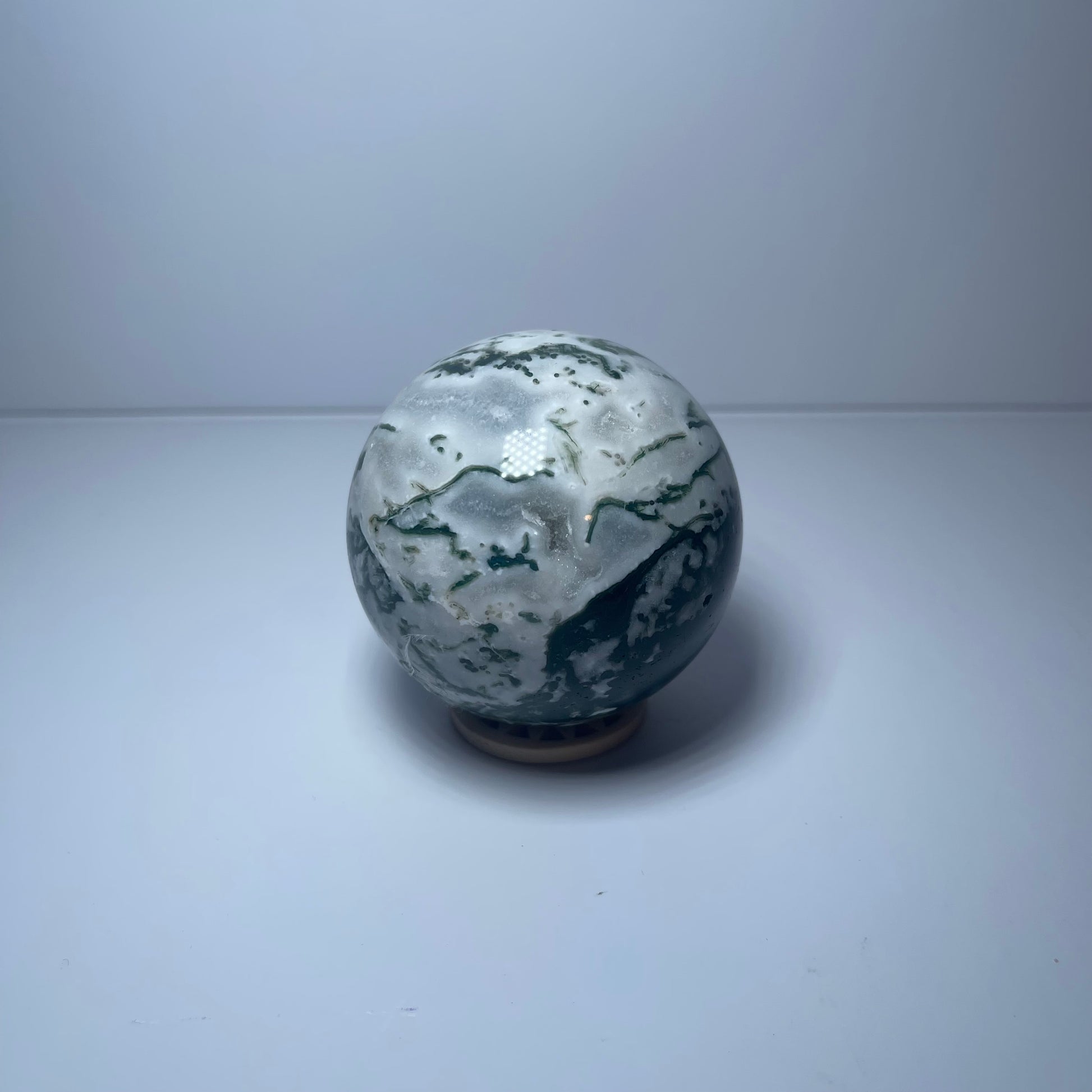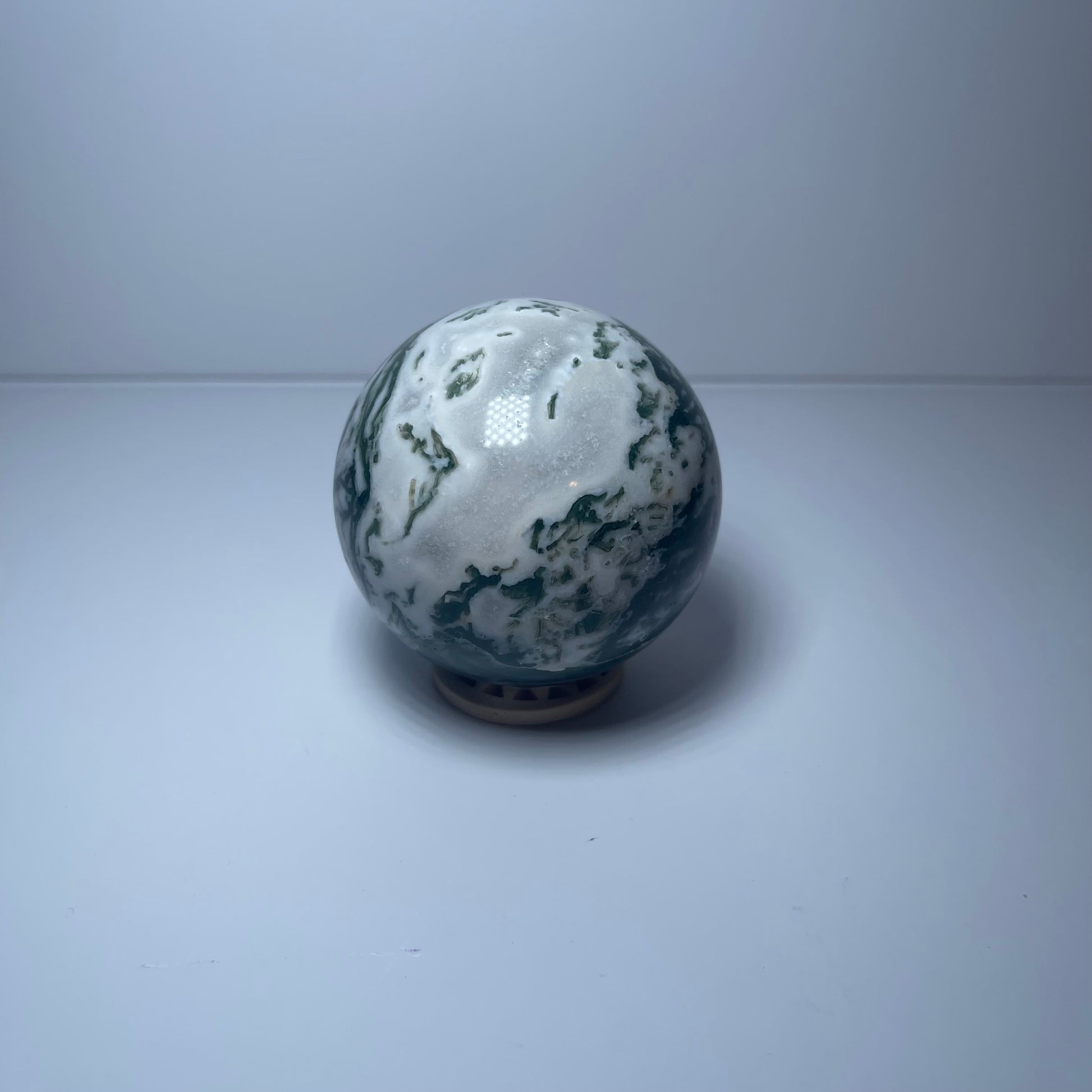 Moss Agate is known as a stone of growth, stability & emotional balance. This sphere radiates energy evenly in all directions, fostering calm, focus, and a deeper connection to the Earth.