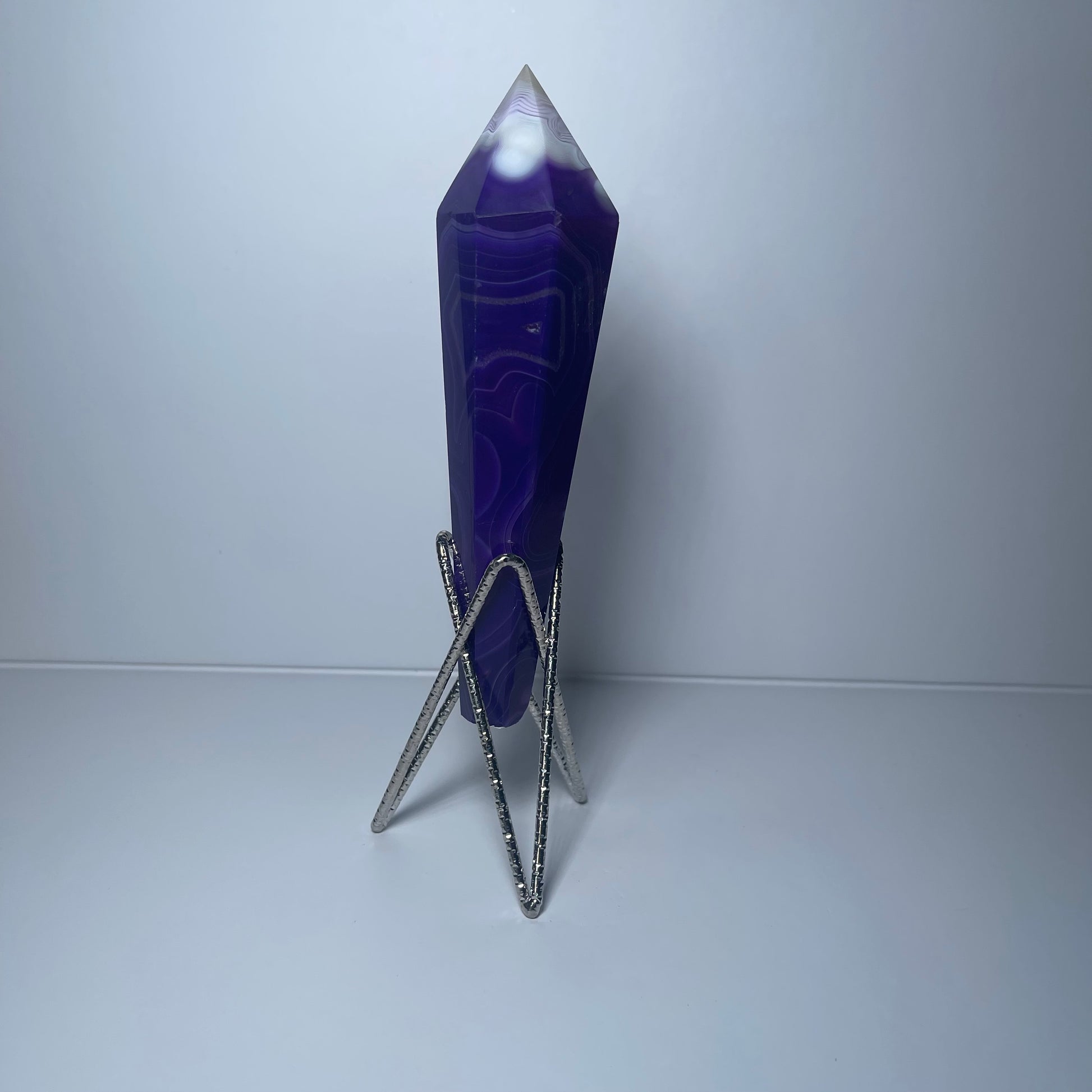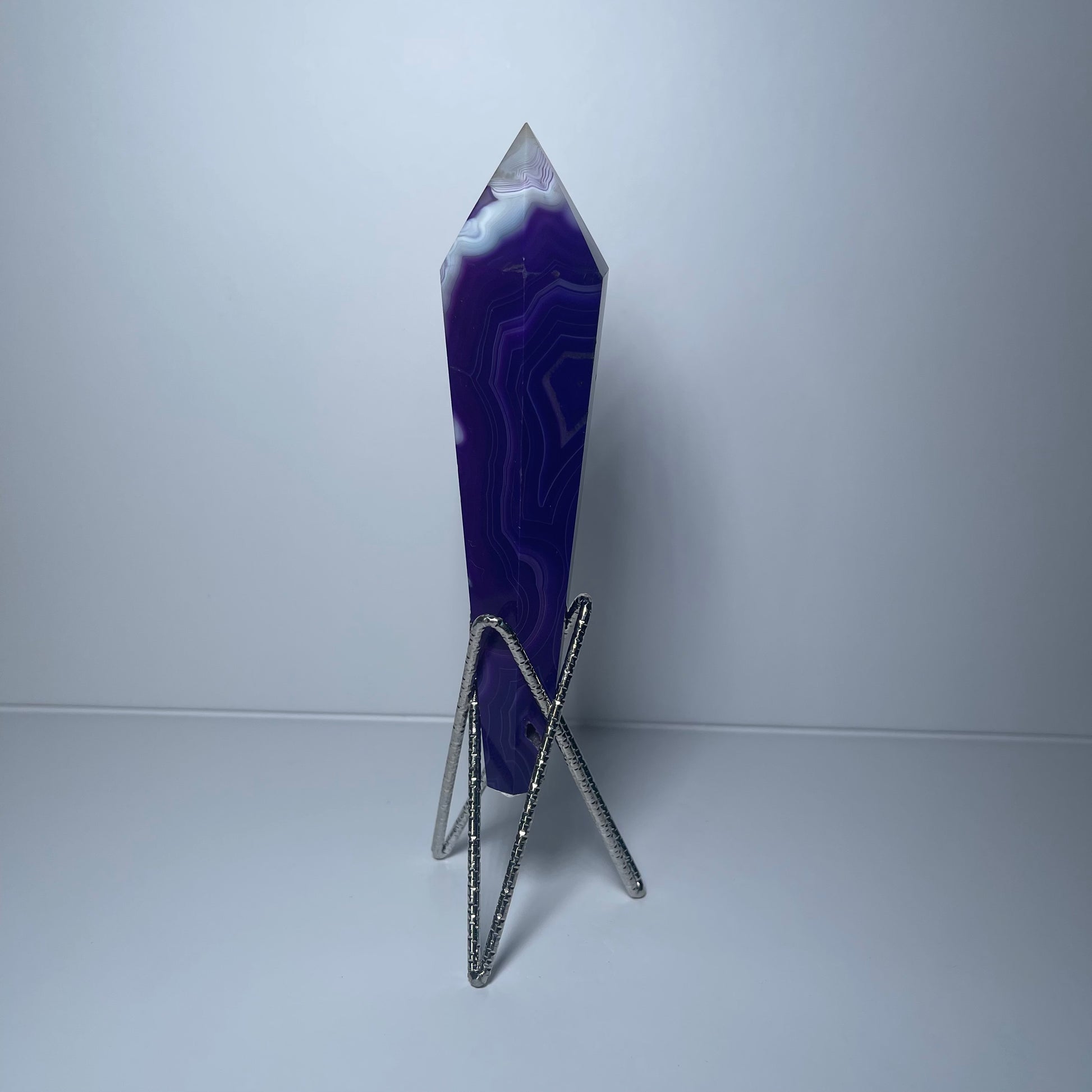 Bold and vibrant, this Purple Agate Wand measures 6 inches long and weighs 6 oz. Made from genuine agate that has been dyed to enhance its rich violet tone, it brings both natural grounding energy and a striking pop of color. Its smooth, wand-like shape makes it perfect for energy work, meditation, or as a unique display piece. (Stand not included.)
