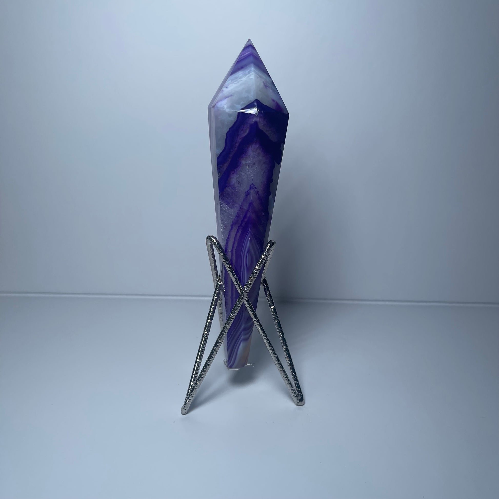 This enchanting Purple Agate Wand measures 6 inches long and weighs 5 oz. Carved from genuine agate and dyed to highlight its vivid violet hue, it is both a striking decorative piece and a purposeful tool for energy work. Its smooth, wand-like form makes it ideal for directing energy, meditation, or display. (Stand not included.)