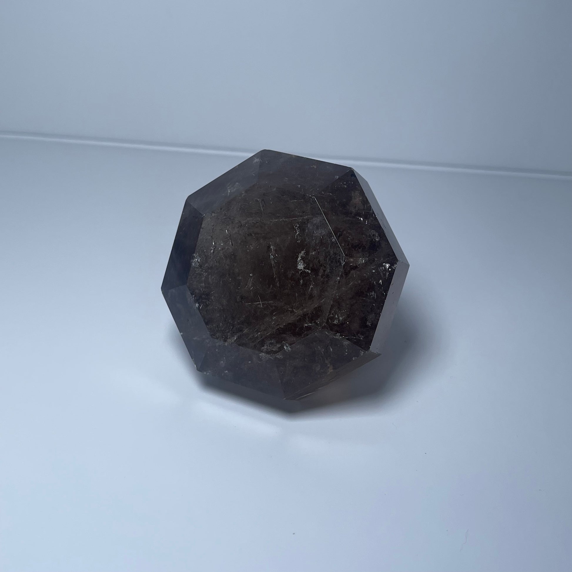 Grounded and luminous, this 3-inch Smoky Quartz Diamond weighs approximately 9 oz. Its geometric form combines elegance with earthy energy, offering a piece that radiates strength, stability, and quiet refinement.